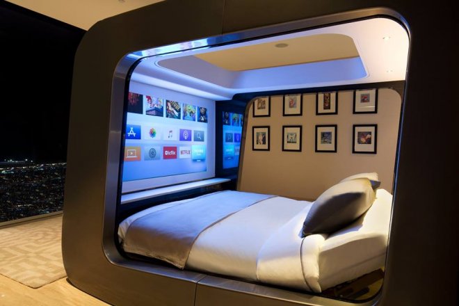 ▼4.HiCan高科技智能床,床上內置3個觸摸傳感器,使用者可以對其自由編程決定想要的功能,比如控制空調、燈光、百葉窗等其他智能家居。 HiCan智能床還內置了Apple TV、Xbox和PlayStation,在床上就可以開心娛樂。
