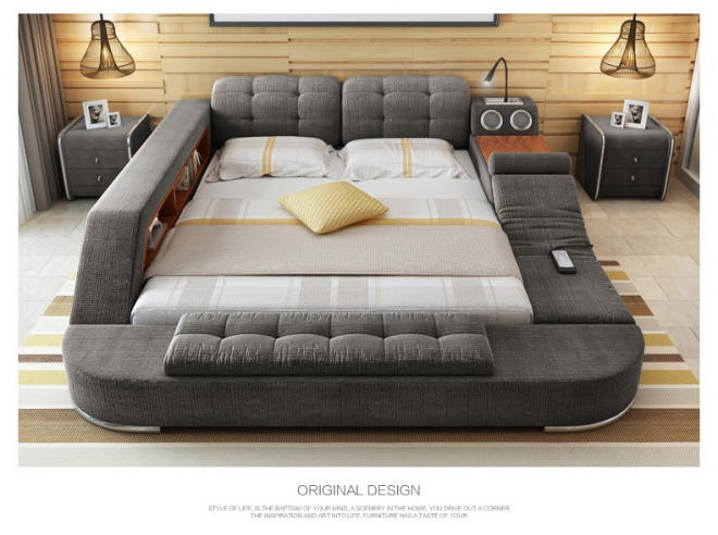 ▼14.Adora Ultimate Smart Bed懶人智慧床,內建按摩椅、立體聲音響、保險箱、耳機、工作台、書架、燈、藍牙、USB插口,SD卡插槽和電源插座。