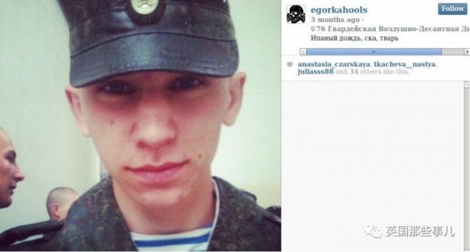 就是這貨,一身俄羅斯正規軍軍裝,在某次軍事行動結束後拍了張照片傳到網上...