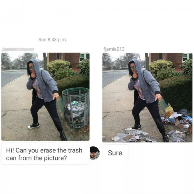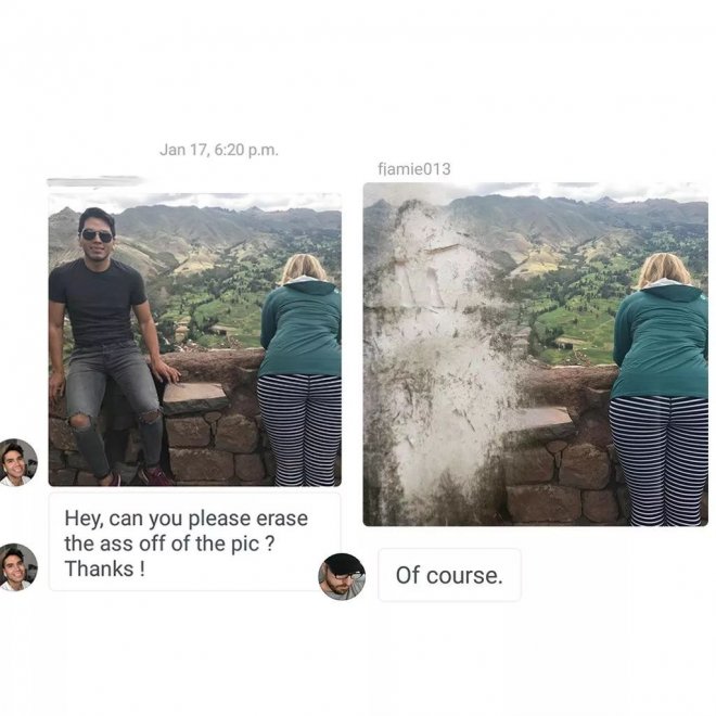 網友:嘿,你能把那個蠢貨從照片里去除嗎?