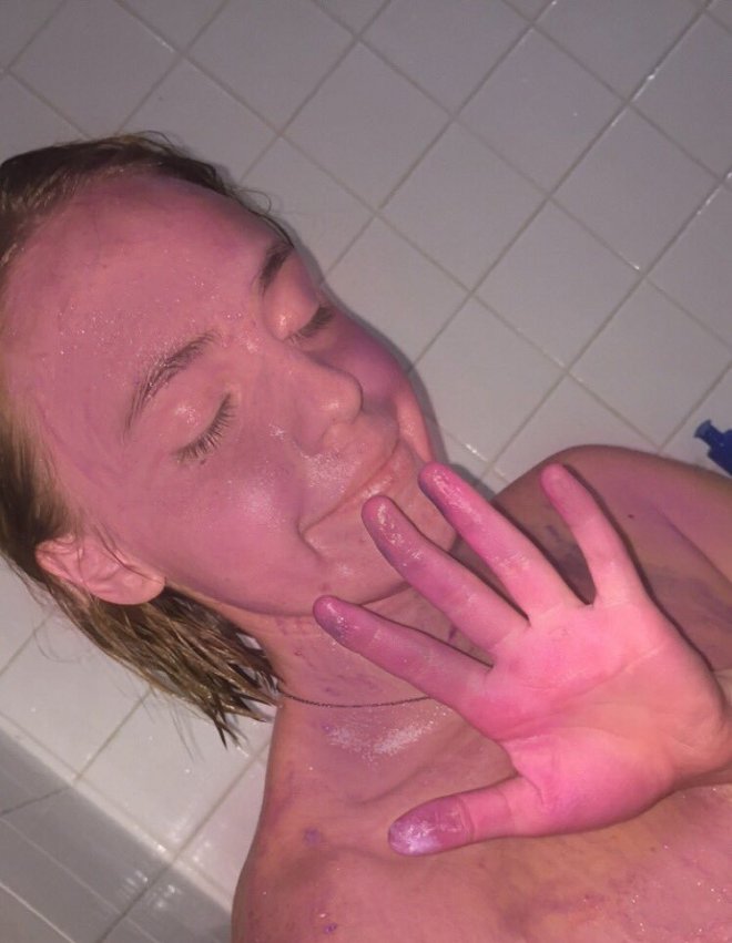 她興奮用「最新買的泡澡球」泡澡,下去5分鐘驚見自己變成「藍色小精靈」,看到她的半身照讓網友全部笑噴XD