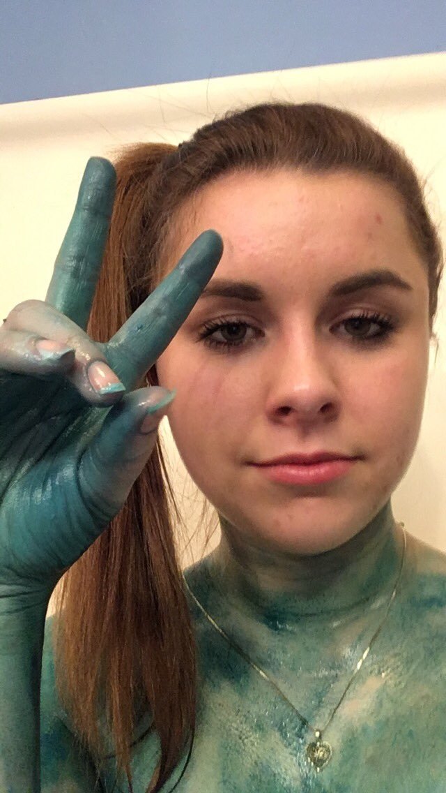 ▼因為她只泡了5分鐘,竟然已經變成一隻藍色小精靈!