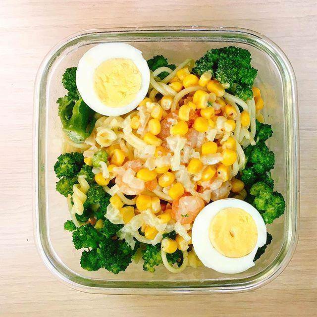 奶油鮮蝦義大利面、花椰菜& 水煮蛋