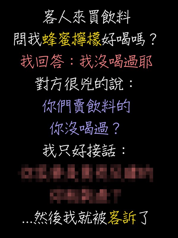 延伸閱讀客人很兇的問我為啥沒喝過蜂蜜檸檬,我回答他後就被客訴了
