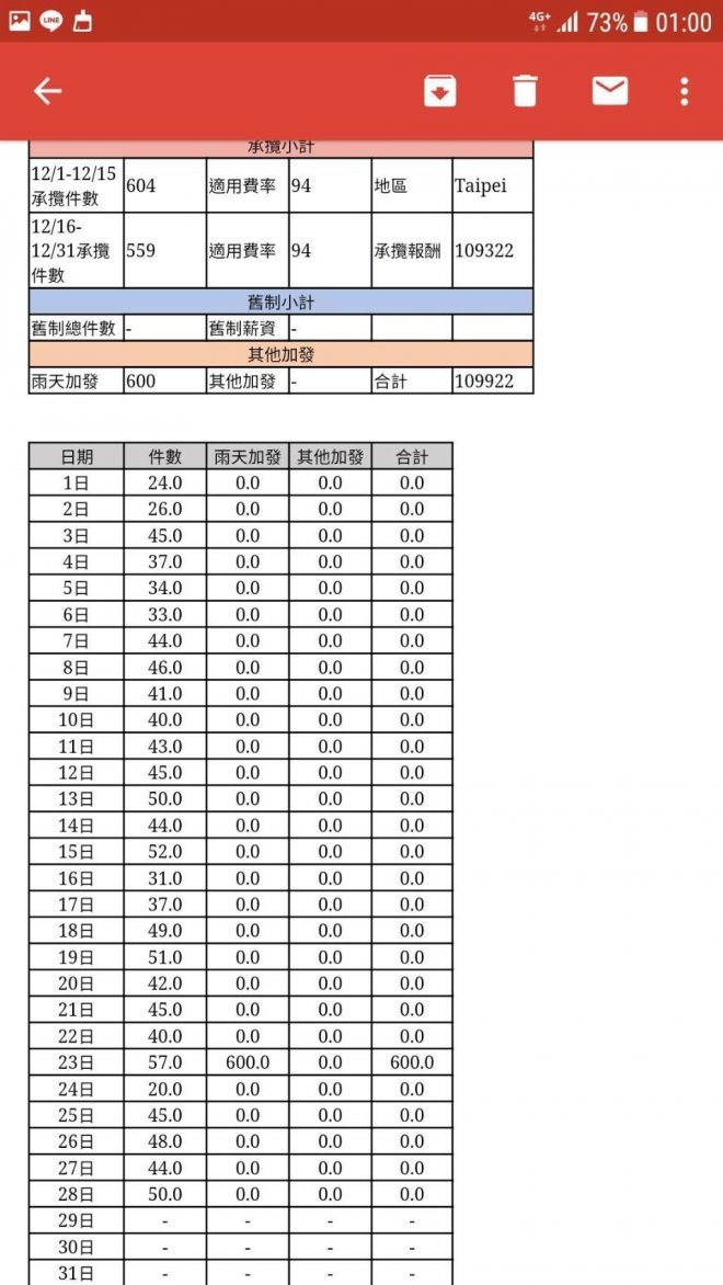 網友們仔細查看薪資單明細後,發現該外送員常常一天送40趟,整天風吹日曬雨淋、廢氣吸飽吸滿,不由得感嘆這真是辛苦錢……