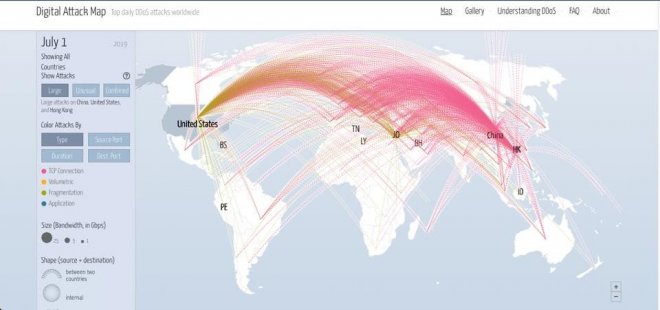 有網民話好驚有一日香港人都要「翻牆」上網(圖片來源:news.163.com)有網民神探上身,喺網站「Digital Attack Map」搵到疑似強國向Cloudflare