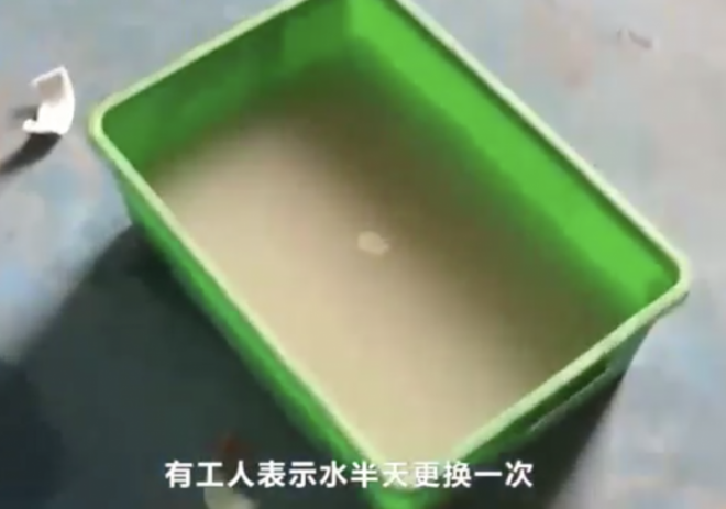 洗碗水是泥黃色的,工人更透露,洗碗水每半天才換一次。