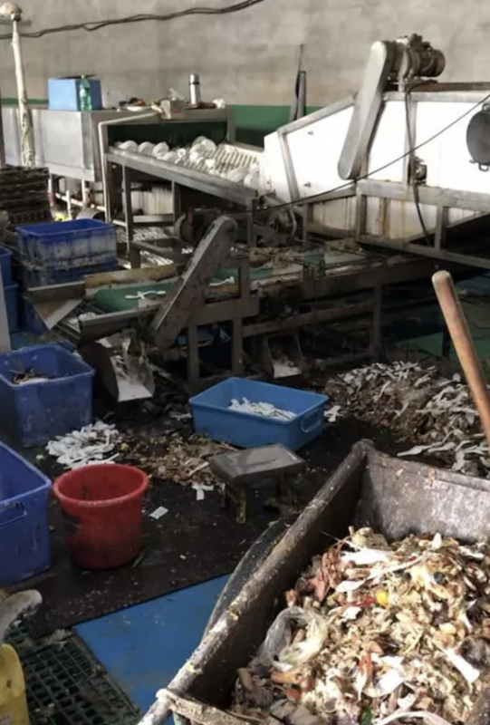 一踏進廠房,便傳出陣陣惡臭,地上滿佈垃圾和食物殘渣。
