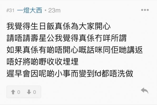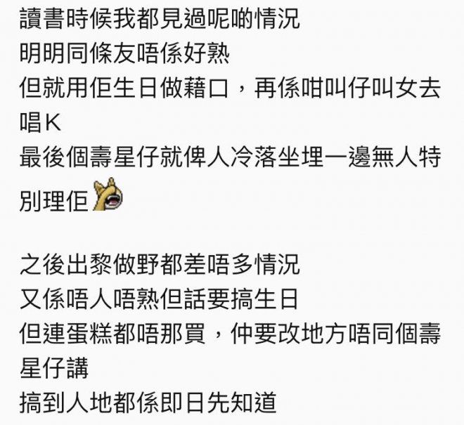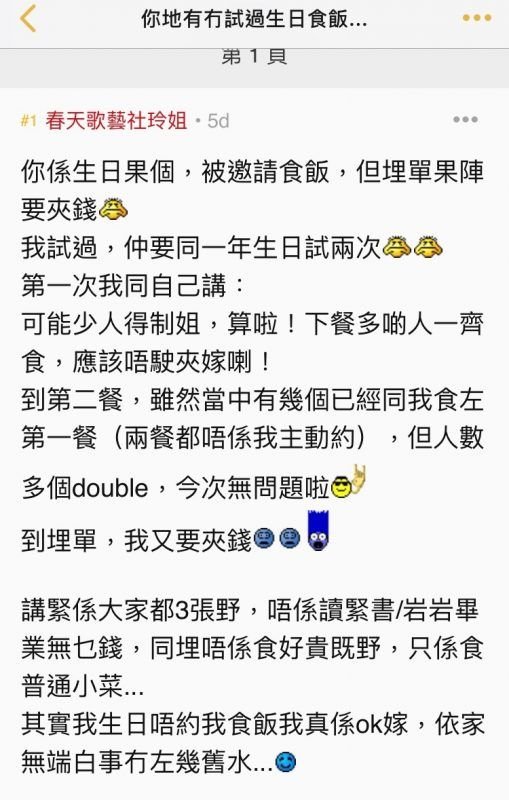 朋友約食生日飯點知要夾錢 慘過岩布仙尼Happy Birthday to Me