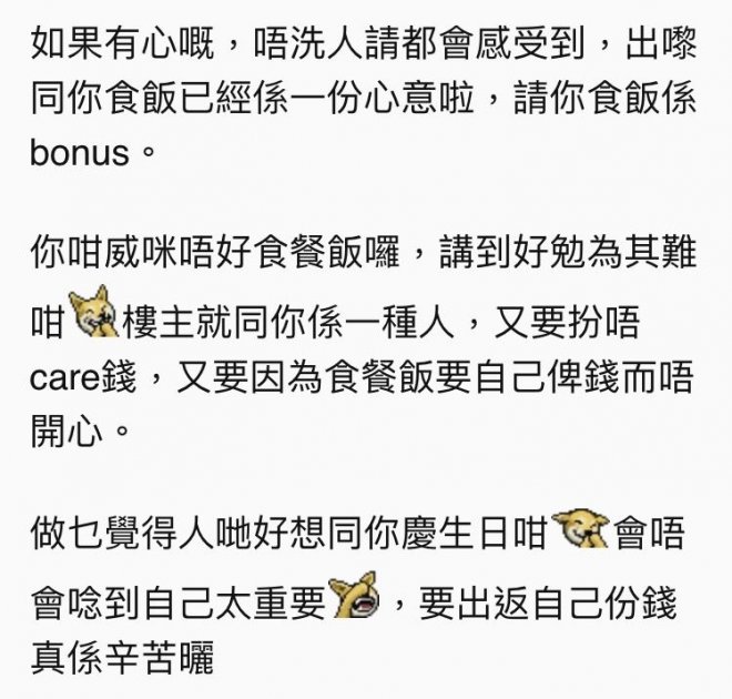 網民認為朋友聚會在乎心意,太過在乎誰付錢而唔開心,最終辛苦自已。