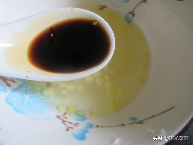 3、吃海鮮少不了薑,放點薑可以去寒。今天菜菜做的這個蘸料是酸甜薑味,當然您也可以根據自己的口味來調。溫馨提示:平常有痛風現象的朋友,少食海鮮。