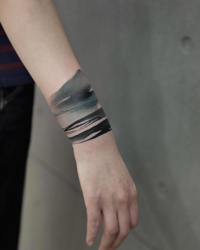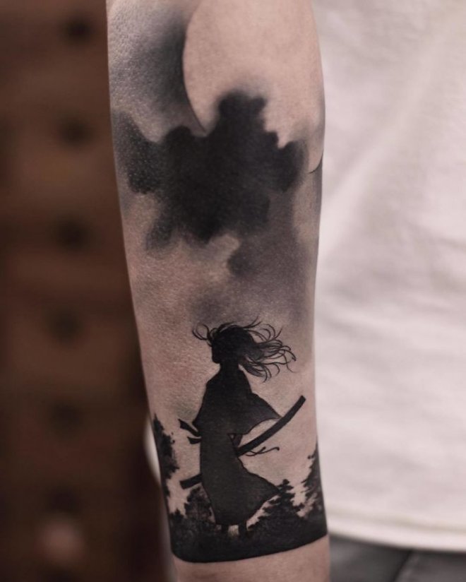 大部分人刺青時會選擇線條分明的圖案,但水墨丹青紋出來也很有意境。