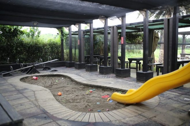 戶外遊戲區、沙坑、鞦韆、翹翹板、兒童戲水池~通通都有