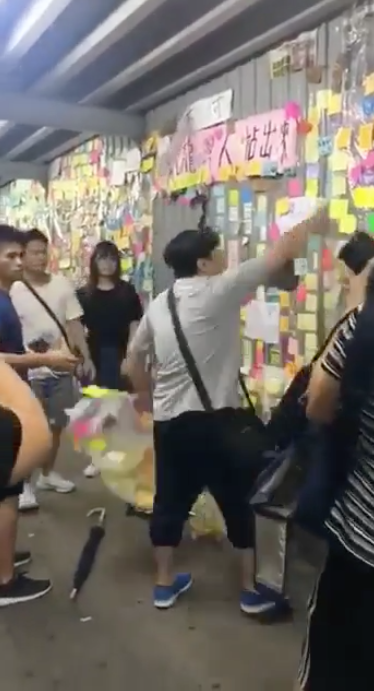 聲援「反送中」嘅「連儂牆」近日喺全港各區遍地開花,不過近日多幅「連儂牆」都遭「藍絲」踩場,同支持「反送中」嘅人士發生衝突,噚晚就有一名肥中坑就喺九龍灣近淘大花園嘅「連儂牆」搗亂,大吵大鬧,粗言穢語指罵在場嘅「反送中」人士,又撕毀大量貼喺牆上嘅Memo紙,期間更連環出拳打人,十分暴燥,過程被人拍下瘋傳,網民對肥佬嘅行為大多表示憤怒!
