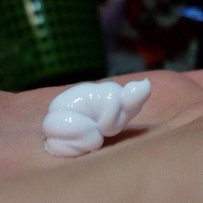▼擠出一坨潤膚霜,看起來就像米其林在禱告。