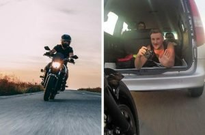 這張照片裡的摩托車非常炫酷。但是要拍下這張照片時的過程應該很困難還要有很好的技巧。