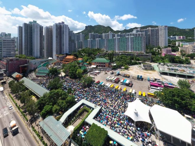 近日非常勇武嘅黃大仙街坊,迫滿黃大仙廣場。