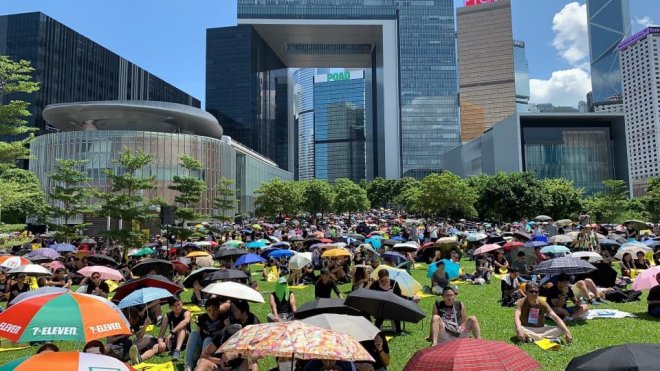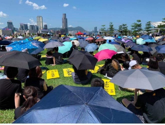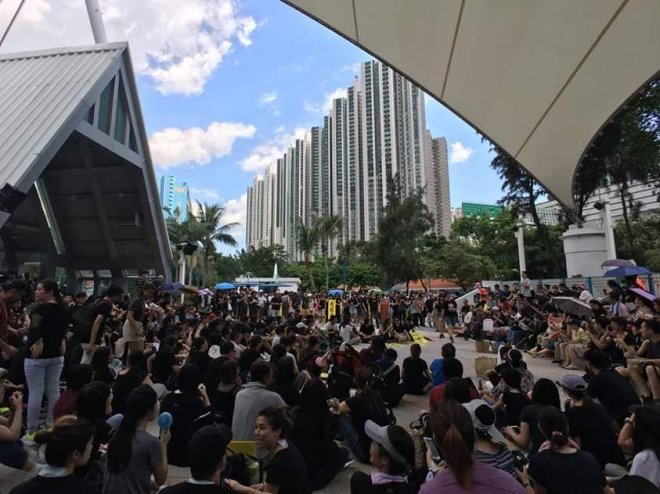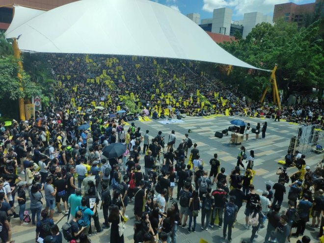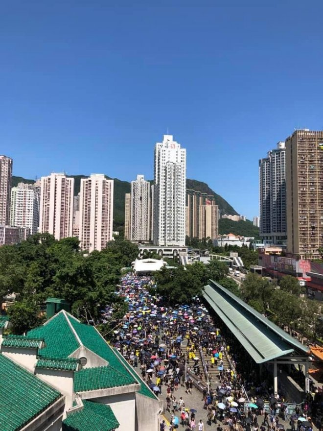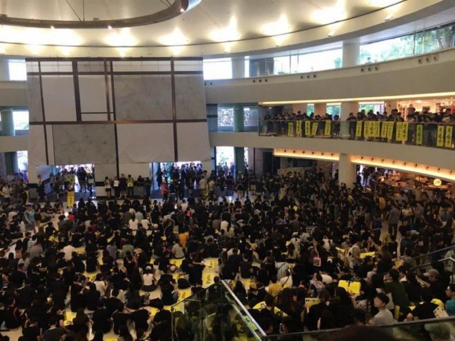 「反送中」遍地開花 「三罷」七區集會全部迫爆「七區集會」分別喺金鐘添馬公園、旺角麥花臣球場、黃大仙廣場、大埔風水廣場、 荃灣公園、沙田百步梯同埋屯門文娛廣場舉行,集會開始前,已塞滿大批市民,當中沙田區嘅市民,更塞爆埋附近嘅新城市廣場大堂。