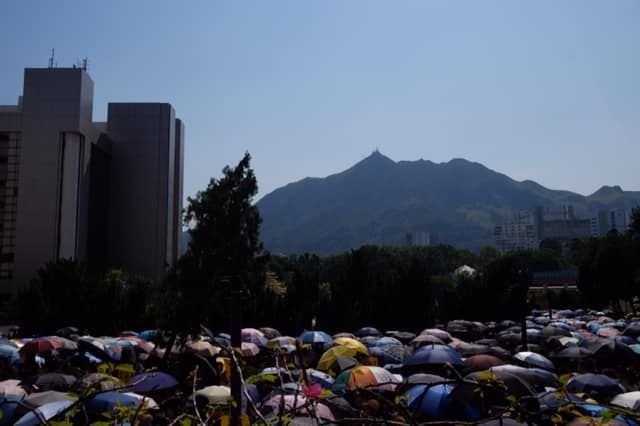 近年經常舉行社運集會「百步梯」、沙田大會堂對出嘅空地,早已迫滿參加集會嘅市民。