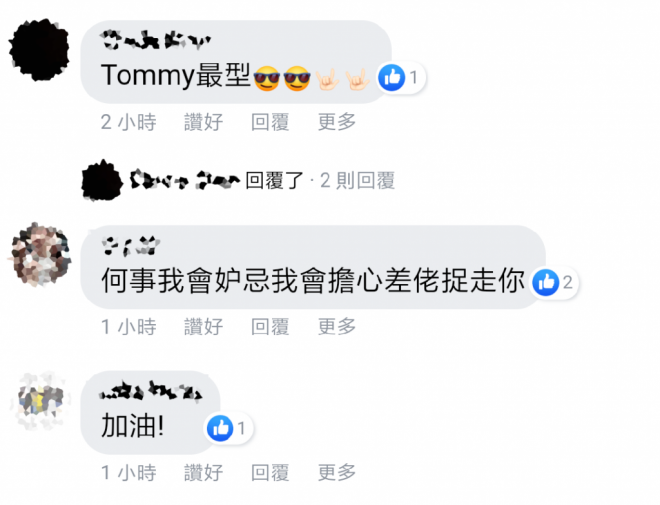 不少網友看到Tommy的貼文後,即時留言大讚「係好鬼死型」、「無論如何去到邊度大家一定要一切小心。」、「安全就好了,擔心你」、「多謝你。你都要記住自己小心啲。」,有部份更將E-Kids的經典作品《開始戀愛》進行二次創作「何時我會妒忌我會擔心黑警捉走您,小心啲阿」、「何事我會妒忌我會擔心克警恰9你 」、「何事我會妒忌我會擔心差佬捉走你!」