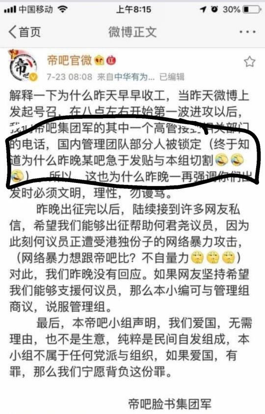 「帝吧」宣佈收兵。