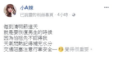小A辣也幽默表示:「因為怕祖先不認得我。」