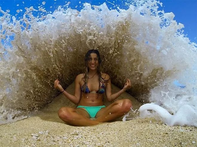 快門剛好定格了浪花即將拍到小姐姐的前一秒~