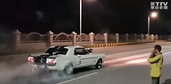 福特要價600萬元的第一代「野馬」,3月底在台中海線環港北路上與一輛重機尬車,沿路漏油劃出一道長長火舌,民眾圍觀還幫忙滅火。有車友爆料,車主根本是車界老鼠屎,野馬沒領牌照,且3年前就在同地和GTR、保時捷911飆車,被依公共危險罪送辦,這次警方雖沒接獲情資,但一定追查;經肉搜找到家住太平的他,40歲陳姓男子從事與車相關的貿易工作,家境不錯,