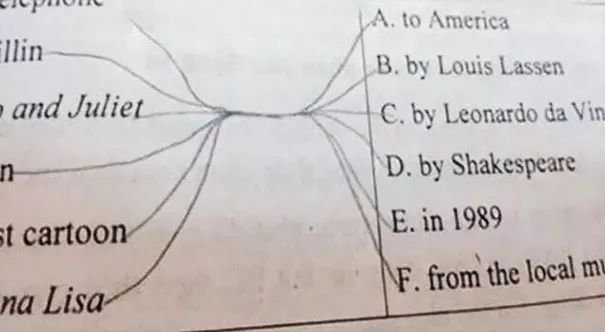 做個連線題都能擰成一股繩...你這是在侮辱改卷老師的智商你知道麼!