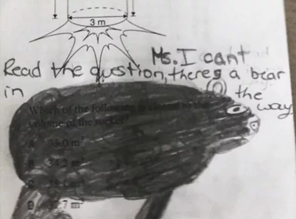 這個...在題目上畫一隻熊,說熊把題目擋住了...