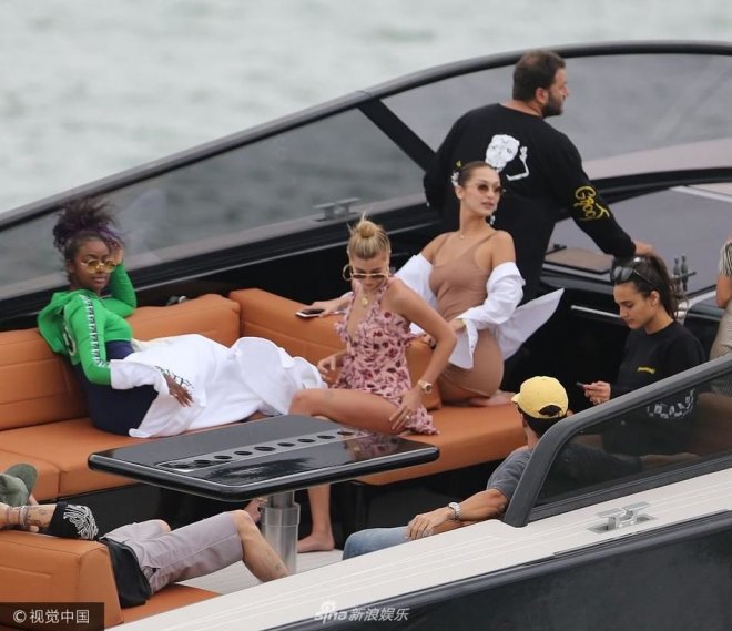 和好友貝拉·哈迪德(Bella Hadid)一同到海上出遊
