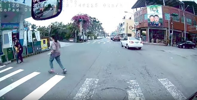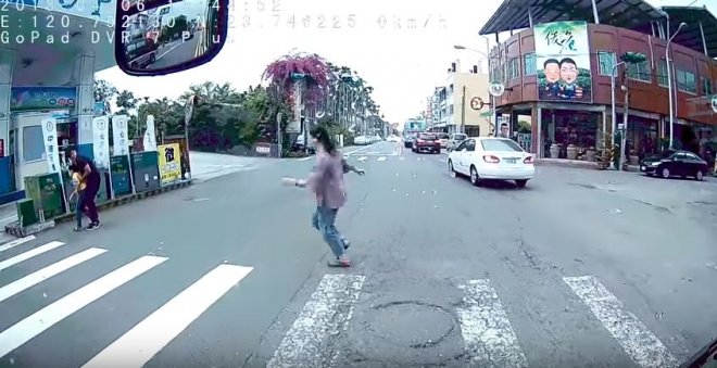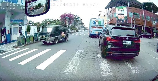 沒在看路的他沒注意到右方的廂型車,下一秒就和車子發生擦撞,
