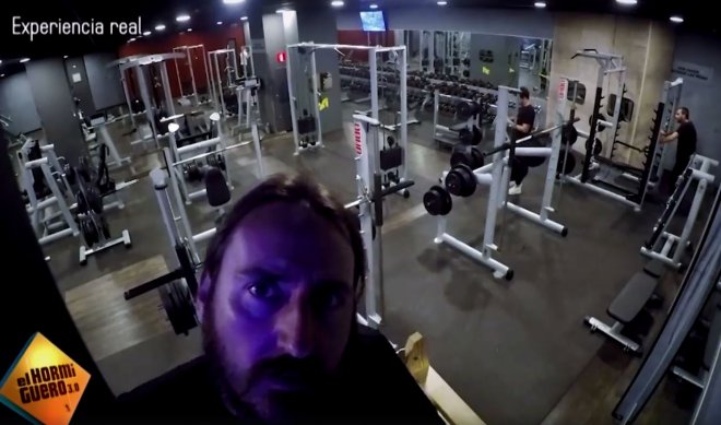 接著,製作單位故意在健身房架設隱藏式攝影機。