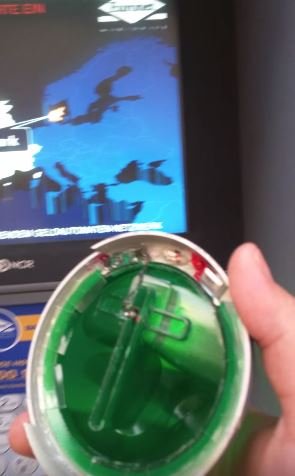 眼尖的他瞄到綠色讀卡機周圍有一圈白色的黏膠,立刻察覺不對勁,決定伸手「轉一轉」,沒想到真的被他給轉下來啦!
