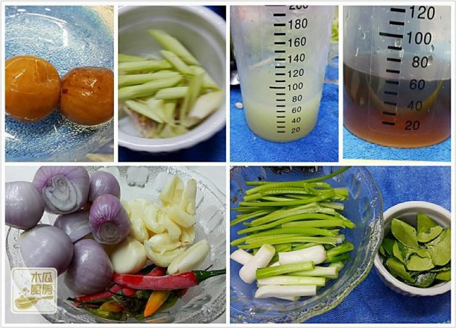 1. 檸檬葉除去中間條硬莖,留葉;香茅去頭尾