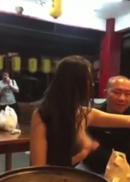 第一段影片就告一段落,看起來交涉並沒有什麼結果,這名女子依然相當我行我素,所以在第二段影片中更加誇張,一開始就直接把左乳整個露了出來...