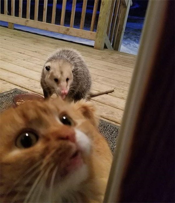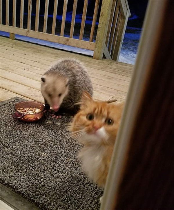 貓咪被負鼠搶食懷疑人生,轉身「你不幫幫我嗎」超委屈表情萌翻網友! 動物 可愛 故事 大多時候貓皇都是威嚴又霸氣的,但是最近國外一隻貓咪被負鼠搶食時的反應,卻讓網友萌翻了。
