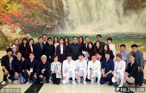 而演出結束後的一張合照讓粉絲更是崩潰了,金正恩和演出人員的合照中,他並沒有和南韓表演團中最德高望重的「國寶級歌手」趙容弼站在一起,而是和擁有神級美貌的Red Velvet隊長Irene站在一起。