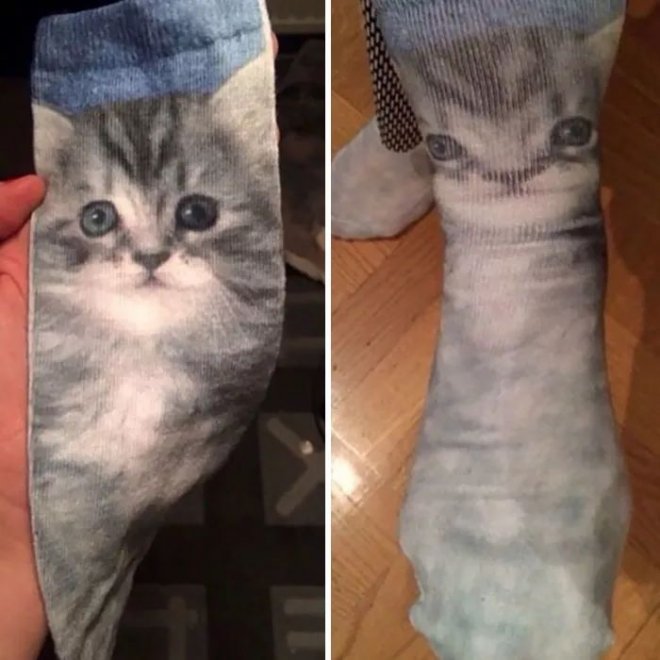 這雙貓咪襪子,穿之前,它是一隻無辜的萌貓,穿上後,是一隻詭異的萌貓...
