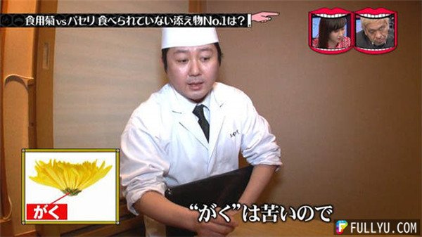 專家也介紹了生魚片上的菊花吃法,花萼帶有苦味不要吃。