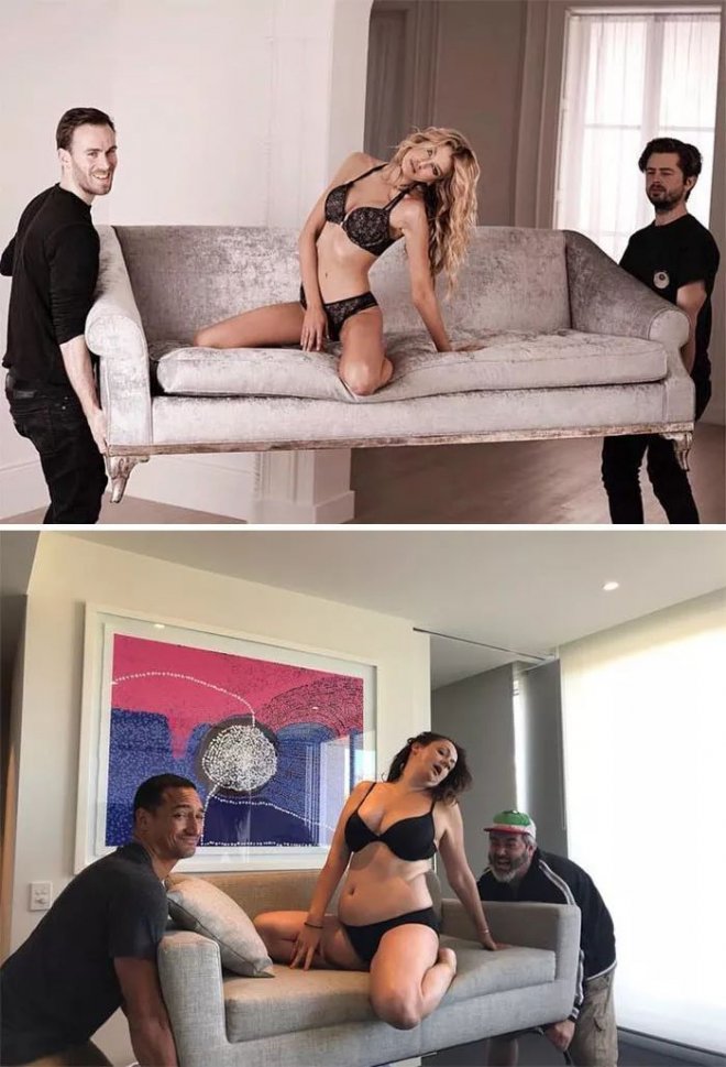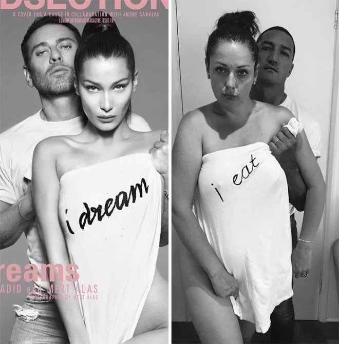 她發現了很多明星給自己的圖片修圖作假後,決定發出自己的吶喊——在網上開了一個帳號,然後開始翻拍各路名人的經典照片。