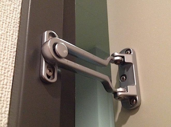 雖然當下覺得很害怕,但也沒有其他可以住的地方,所以推主不只是拴上門鍊,還把房間內可以移動的櫃子,再加上自己的行李箱都移到門口,讓門無法被輕易打開。