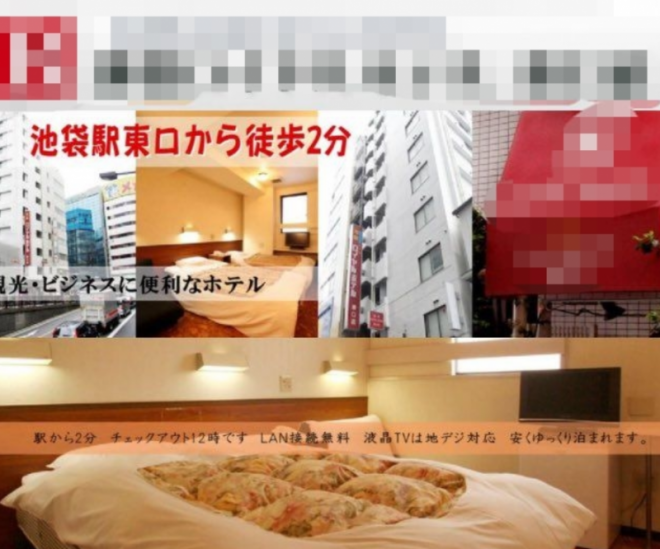 這位推主去參加同人活動之後住進池袋一間治安頗差的飯店,但當時推主並不知道這間飯店的狀況。不過一走進房間推主就覺得怪怪的,與其說是改裝自公寓的飯店,更像是便宜的汽車旅館。