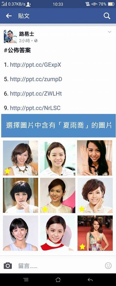 有網友表示「這我真的不行...」「我瘋了...九張照片不是同一個人嗎?」,「這題太無解~」「這太難了 比人生還難」文章竟也釣到宋芸樺本人留言,她在底下幽默說「如果要辦可以來問我!」