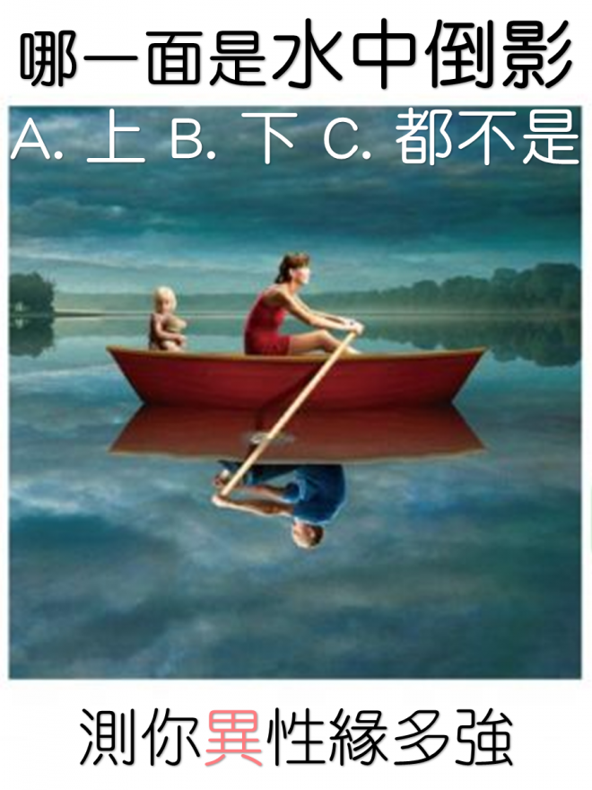 【笑爆心測】哪一面是水中倒影? 測你異性緣有多強!