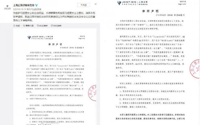 馮提莫工作室亦都透過律師發表聲明,澄清網路上嘅謠言係捏造。但有網友發現馮提莫竟然唔係用自己真名,諷刺佢: