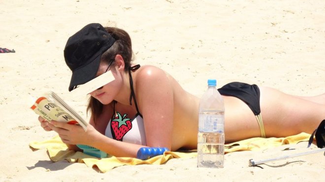 喺偷拍嘅相中可見,呢位被偷拍嘅靚女太專心睇書。但就係因為太專心,呢位靚女離晒罩都唔發覺!
