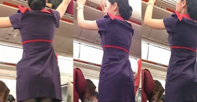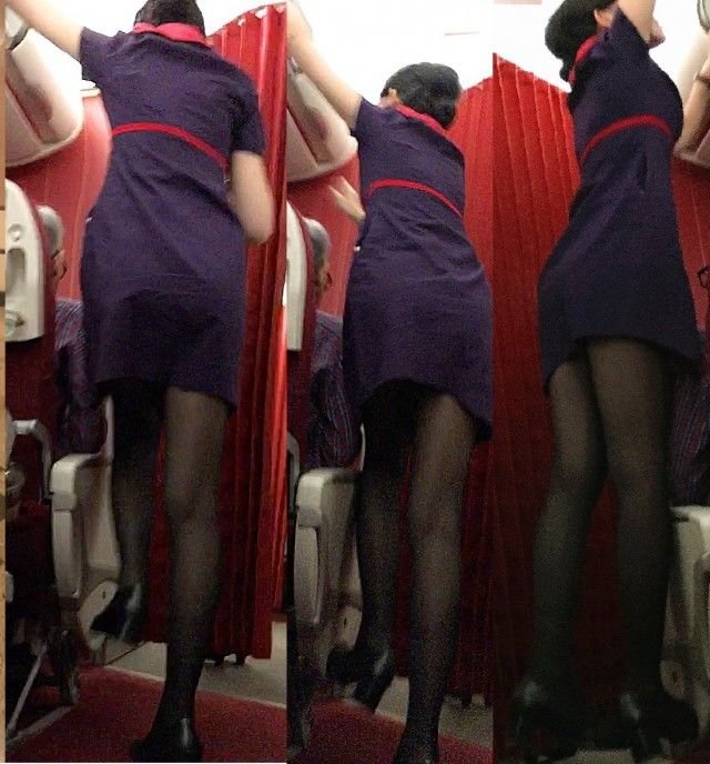 話說這家空姐制服也太過短了點吧,只要稍微墊腳摸上面行李,下面就快失守…