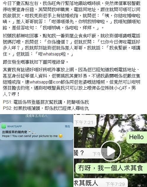 咁阿蛇話要提供,身為良好市民一般都會合作啦,除非咁唔好彩遇上黑警啫。點知YoYo伍淑怡今次就真係遇到正。個軍裝警竟然問YoYo可唔可以同佢做朋友。本身做朋友係好簡單、普通事( 唔計阿蛇以權謀私 ),不過YoYo眼利發現,原來位阿蛇手上係有結婚戒指!
