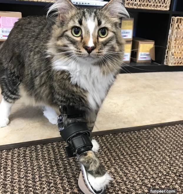 很多動物在他的幫助下,在截肢後依然還能自由的行走...